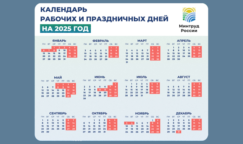Министерство труда опубликовало проект производственного календаря на 2025 год. Россияне будут отдыхать в следующие даты: